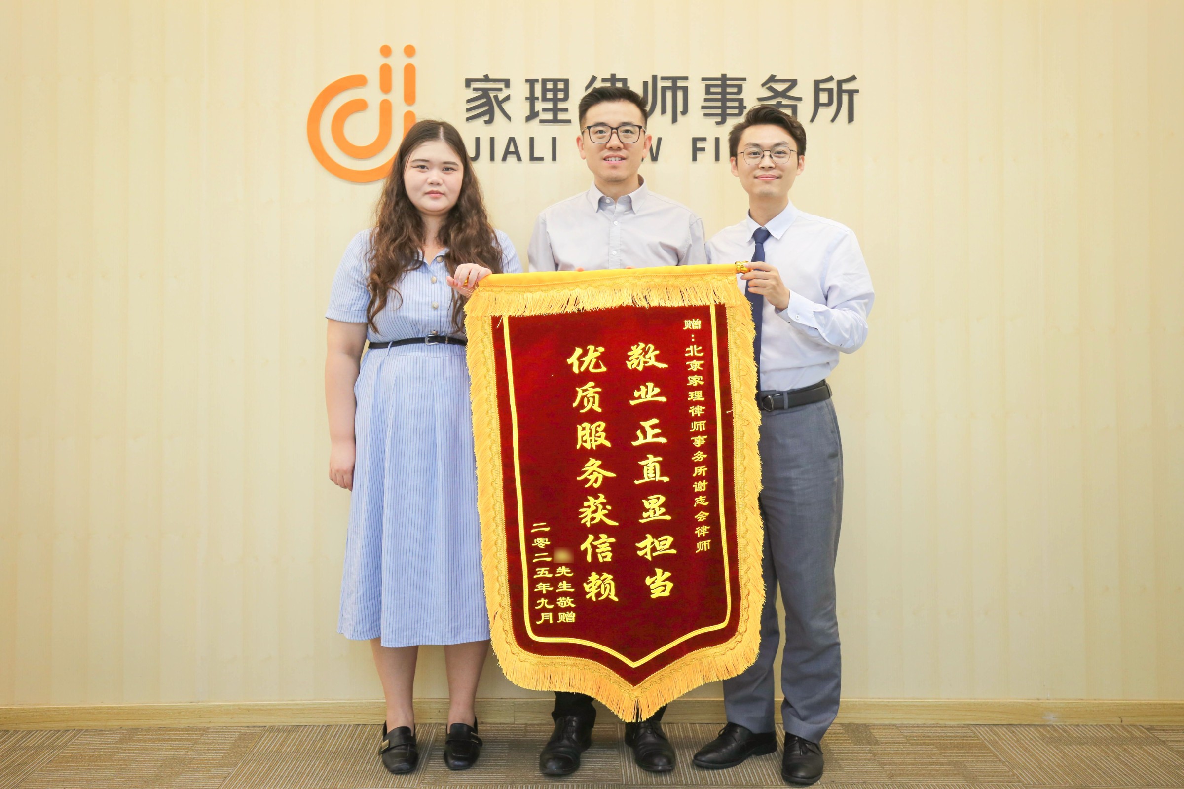 北京家理律师事务所高级律师霍海燕、律师助理马鑫蕊、资深律师史星星代理的袁女士(化名)抚养费纠纷一案,成功为远在异国的袁女士及孩子吴某一(化名)追回拖欠抚养费,并确保后续抚养费按约支付,获赠锦旗致谢。