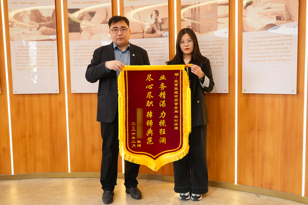 近日,北京家理律师事务所专职律师石静雯、律师助理彭昶,近日成功代理一起婚姻家事纠纷,凭借对案件的精准把握和高效的沟通协调,在两个月内快速促成双方达成和解,帮助当事人圆满解决争议,获得了当事人的高度认可与诚挚感谢。