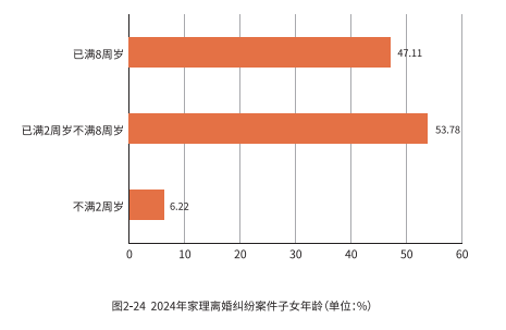 其中,涉及 2-8 岁子女抚养权归属争议的案件占比超过了50%。