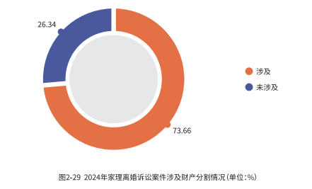 在当前的离婚诉讼中,绝大多数案件都不可避免地涉及财产纠纷,在2024 年家理代理的离婚诉讼案件中这一比例高达 73.66%。