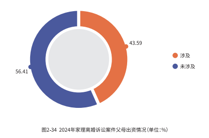 数据显示,在 2024 年家理代理的涉及房产分割的离婚诉讼案件中,约有 56.41% 的案件涉及到父母出资购房的情况。父母出资购房这种现象在中国尤为普遍。