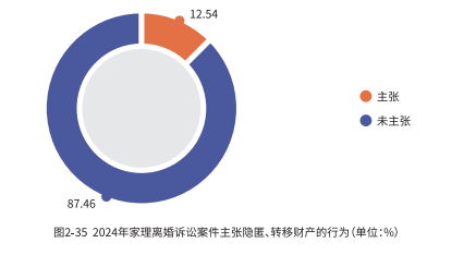 在处理离婚财产分割时,财产转移的认定较为复杂和困难,数据显示,尽管有 87.46% 的案件涉及隐匿或转移财产的行为主张,但最终法院认定此类行为的比例仅为 30.56%。财产转移难认定的问题,在很大程度上源于其隐蔽性和复杂性。