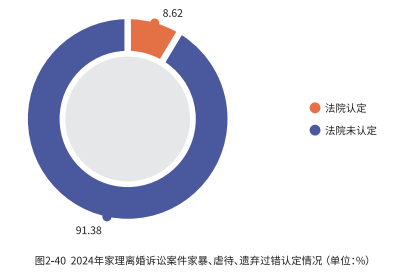 同样,在涉及家暴、虐待、遗弃等严重过错的情况下,只有 8.62% 的案件获得了法院的认可,高达 91.38%的案件未被认定。婚姻过错难以认定的一个重要原因在于证据收集和证明标准的高度要求。