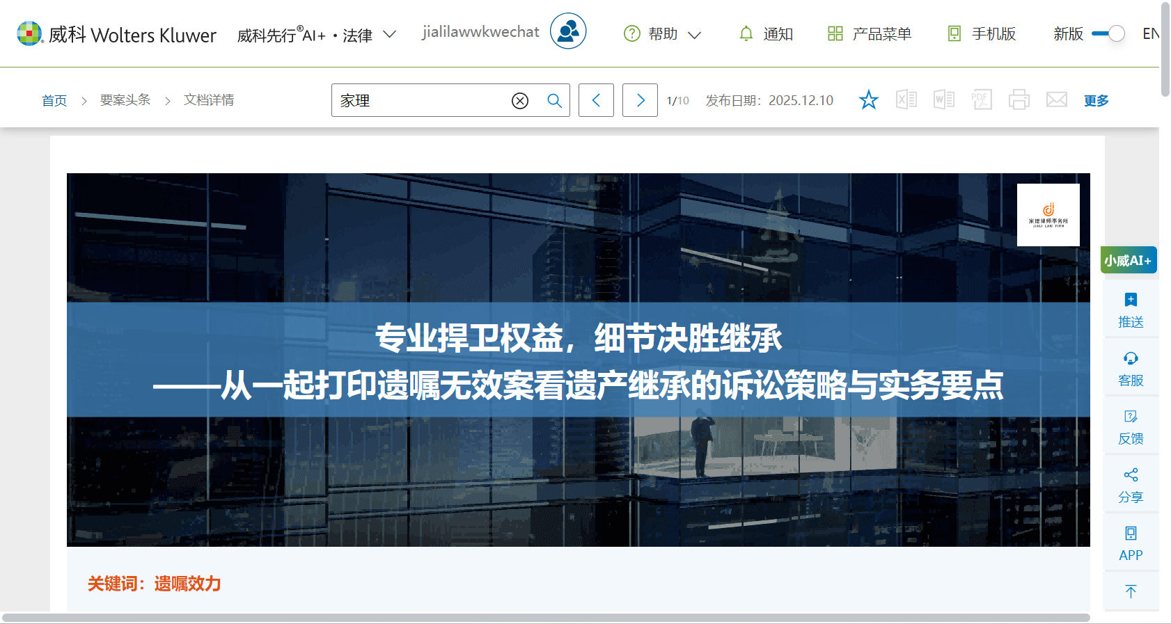 2025年,回声响亮。主任易轶律师的身影,出现在从最高人民法院的专家座谈会,到央视《经济信息联播》的屏幕;从上海律协的行业讲坛,到百度AI开发者大会的前沿舞台。她与团队获得的奖项,从“财富管理品牌之星”到“行业创新突破品牌”,丈量着一个专业领域被广泛认可的价值广度。