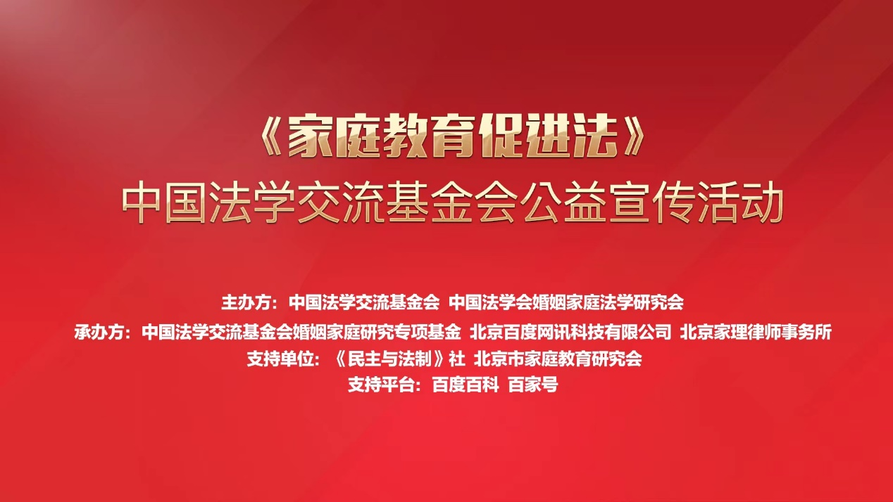 本次活动由中国法学交流基金会婚姻家庭研究专项基金、北京百度网讯科技有限公司、北京家理律师事务所承办,《民主与法制》社、北京市家庭教育研究会提供支持。