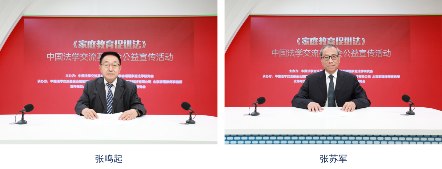 今天5月15日是国际家庭日。2022年1月1日开始施行的《中华人民共和国家庭教育促进法》规定,每年5月15日国际家庭日所在周为全国家庭教育宣传周。在中国法学会的大力支持和帮助下,中国法学交流基金会与中国法学会婚姻家庭法学研究会,共同主办《家庭教育促进法》公益宣传活动。中国法学会党组成员、专职副会长兼秘书长张鸣起,中国法学会党组成员、专职副会长、第十三届全国人大常务委员会委员、监察和司法委员会副主任委员张苏军出席活动并讲话。