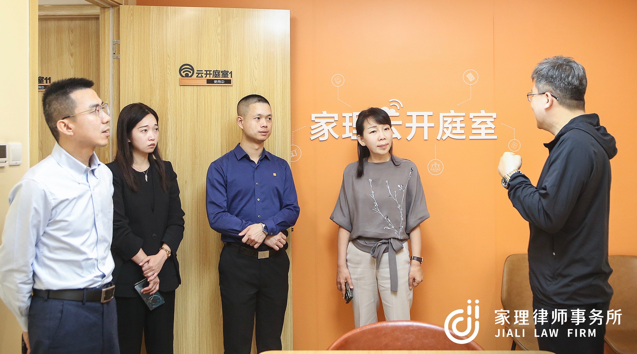 2024年4月22日,顺正税务师事务所有限公司总经理(创始人)李润东,党支部书记、开发部负责人李月材,技术中心负责人、高级项目经理庄家发一行,以及福建旭丰律师事务所高级合伙人、党总支委员方凡佳,婚姻家事与财富传承专业委员会副主任、知识产权专业委员会委员庄幼留一行到访家理。
