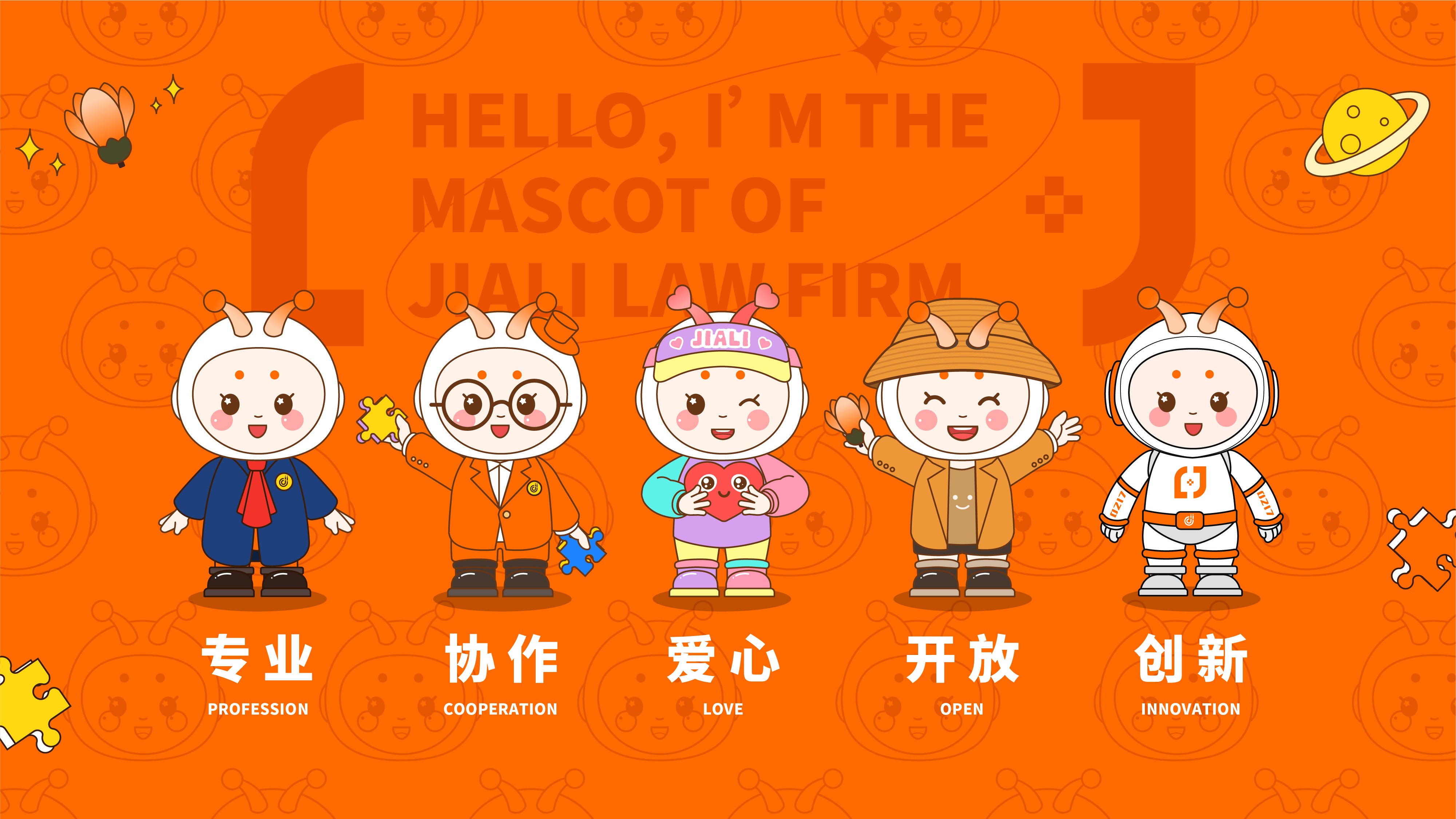 继今年元旦发布吉祥物新形象后,家理律师事务所推出吉祥物新玩儿法:分别代表着家理价值观“专业、协作、爱心、开放、创新”的五只蜗蜗正式跟大家见面啦!