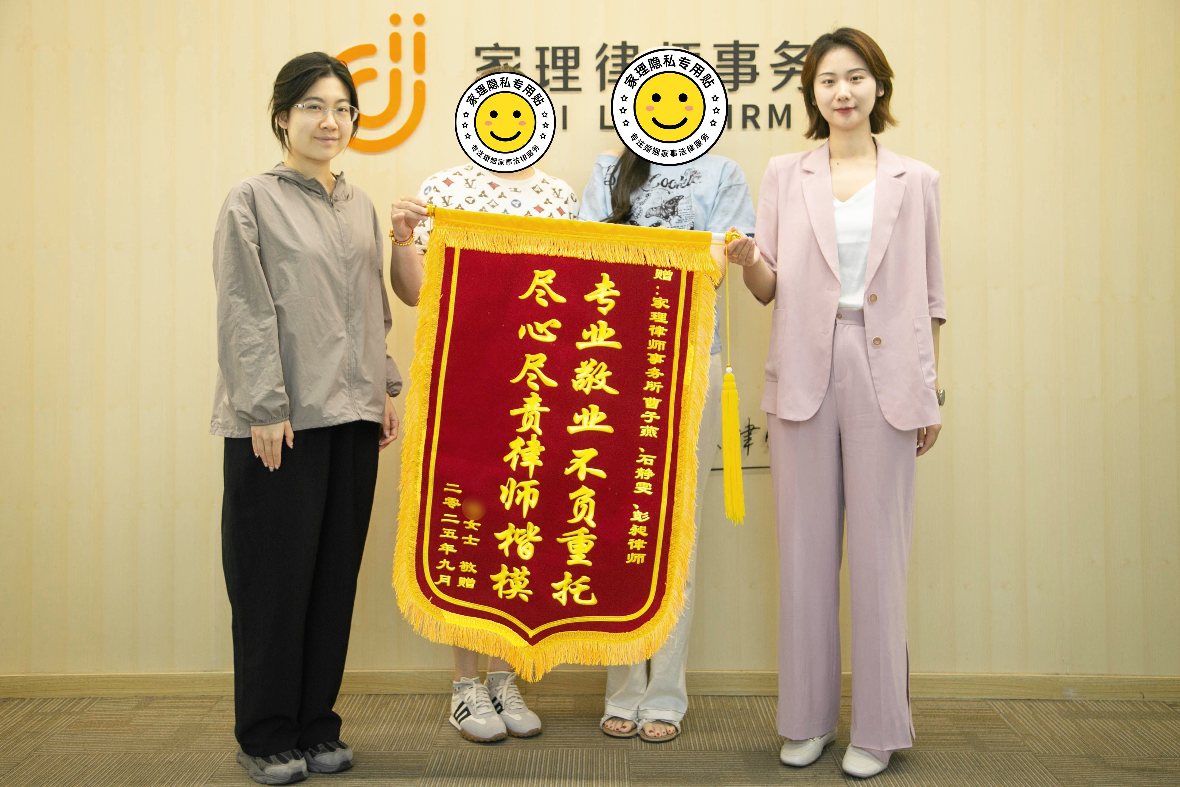近日,北京家理律师事务所专职律师石静雯、律师助理彭昶代理的刘女士抚养费纠纷一案,以高效调解明确抚养费支付事宜,既化解双方争议,又保障孩子成长权益,锦旗致谢。