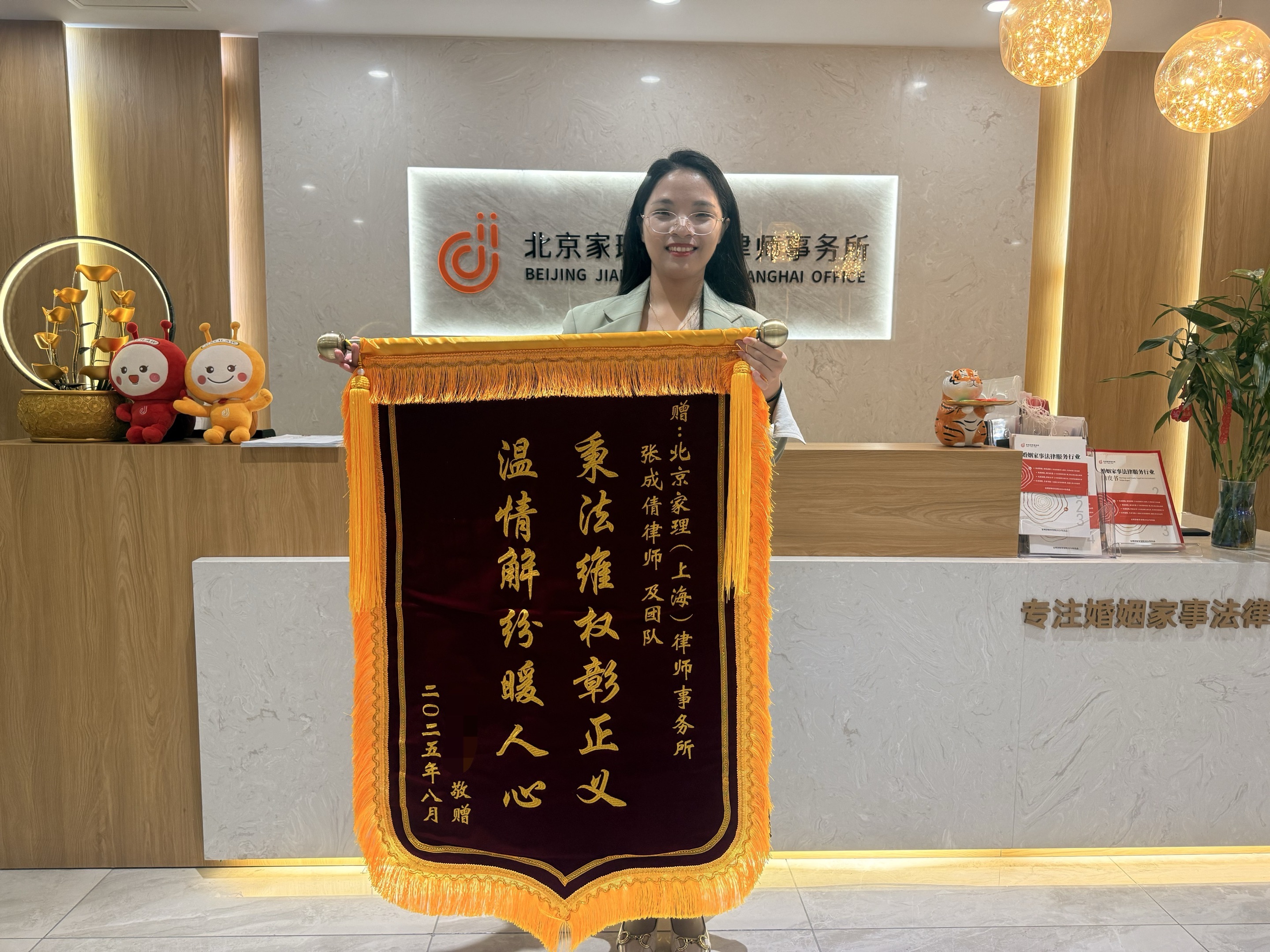 案件结束后,张女士特地赠送锦旗,对家理律师在整个案件过程中展现出的专业能力和负责任态度表示高度赞赏。