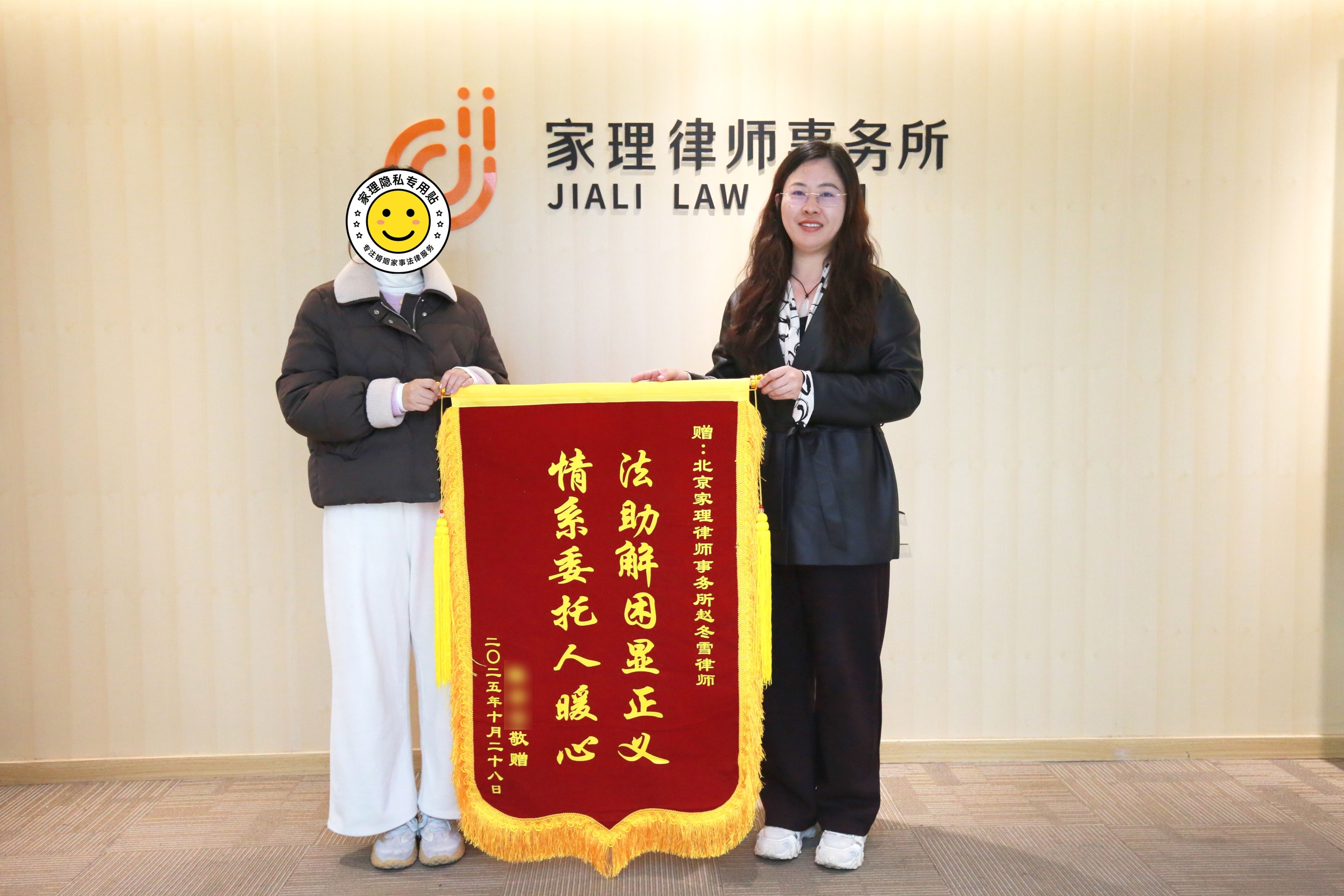 近日,北京家理律师事务所资深律师丁婕代理的李女士离婚纠纷一案,历经两年多诉讼长跑,既以专业化解监护权争议、促成调解,更以全程陪伴安抚当事人情绪,获赠锦旗致谢。